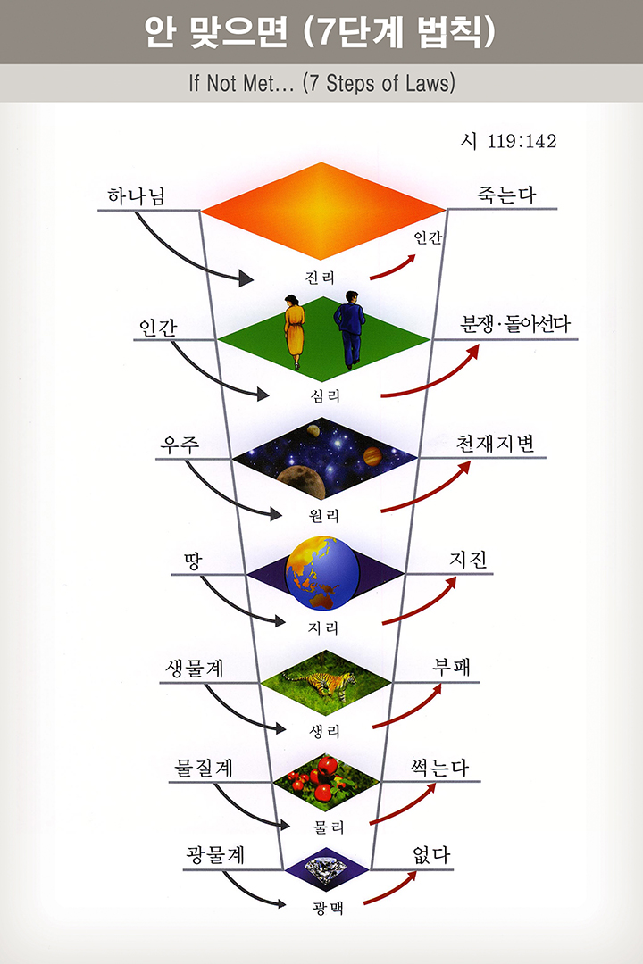 하나님은 법칙의 하나님이시다. 이 법칙을 통해 천지 만물을 창조하셨고 다스리신다. 만물뿐 아니라 사람 사이, 그리고 하나님과 사람 사이에도 질서와 생명력을 주는 법칙이 존재한다. 법칙이 맞으면 존재에 이상이 없으나, 안 맞으면 이상이 생기고 존재할 수 없게 된다. 곧 죽는다는 말이다.