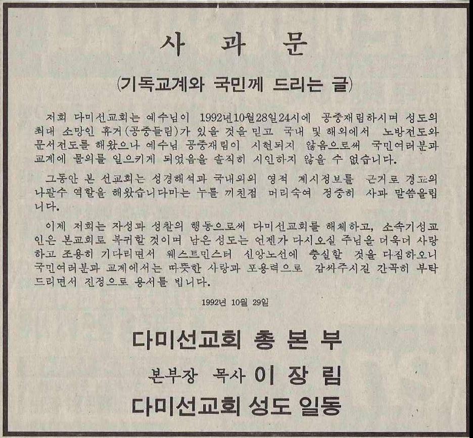 실제로 국내 다미선교회는 육신이 휴거 된다고 주장하면서 사회적으로 큰 물의를 일으켰으며, 다른 나라도 실제 육신 휴거를 외치는 여러 사건이 있었다.