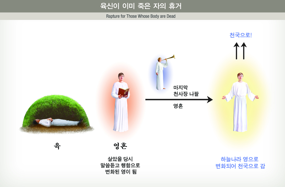 육신이 이미 죽은 자들 중에서 살았을 때 신앙을 지킨 자들과 순교한 자들은 영계에서 예수님의 재림을 기다린다. 때가 되어 이 땅에서 재림 말씀이 선포될 때, 이들도 영계에서 영으로 그 말씀을 듣고 휴거된다.