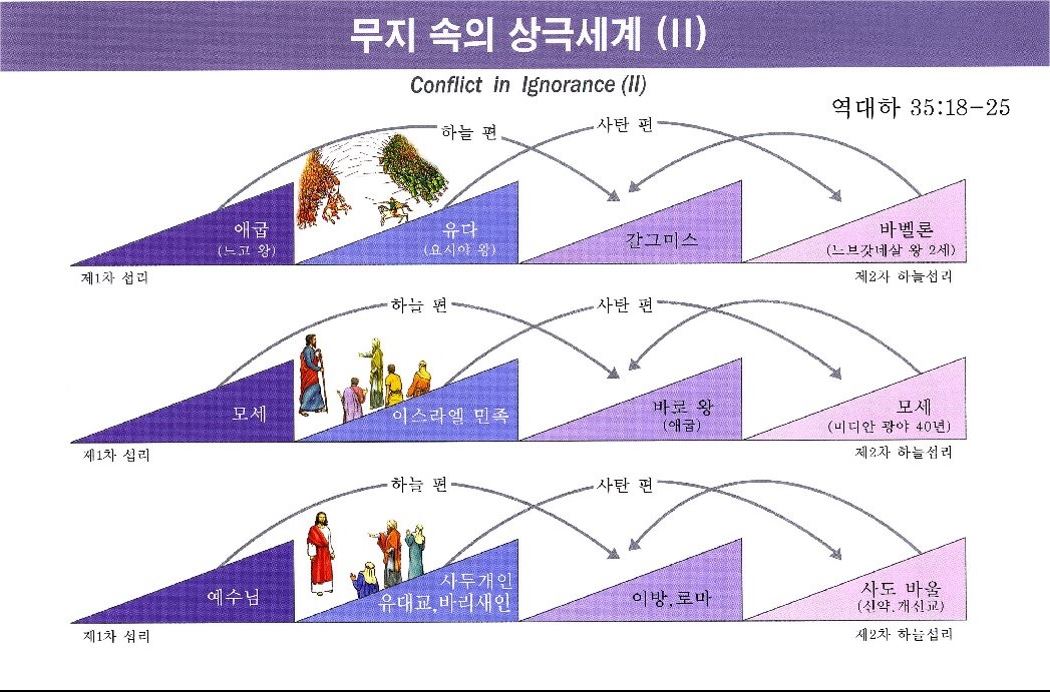 요시야 왕이 몰라서 실패한 것이다. 느고 왕의 입에서 나간 하나님의 말씀을 듣지 않고 싸우다가 죽게 된 것이다. 자기를 위한 일이었는데도 몰랐다. 요시야 왕은 평소 애굽을 원수처럼 여겼는데, 자기 조상이 400년간 애굽에서 고역을 하였기에 그렇게 생각했다. 그러나, 사람이 보기에 원수일지라도 하나님이 보시기에는 원수가 아니다. 그래서 하나님은 내가 보기에 적일지라도 그 적을 통해서 나를 도우시는 분임을 알아야 한다. 내가 힘이 없으면 힘이 있는 원수(사명 강자)를 써서라도 도와주시는 하나님임을 알아야 한다.