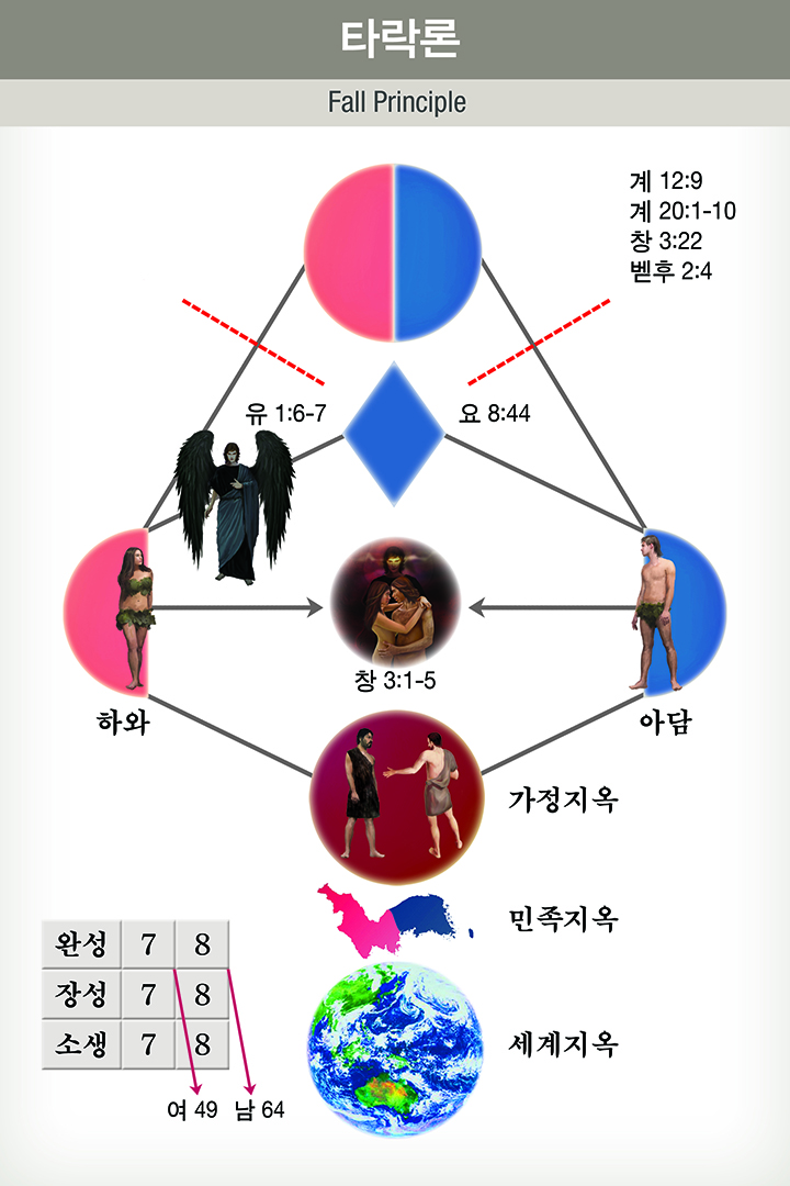 육적으로는 성적 타락이요, 영적으로는 하나님을 더 사랑하지 않고 하나님의 말씀에 불순종한 것이 타락이다. 마음 타락이 되면 육적 타락은 금방이다. 마음이라는 금단의 열매를 내어주는 것이 타락의 시작이며, 타락의 근본이다.