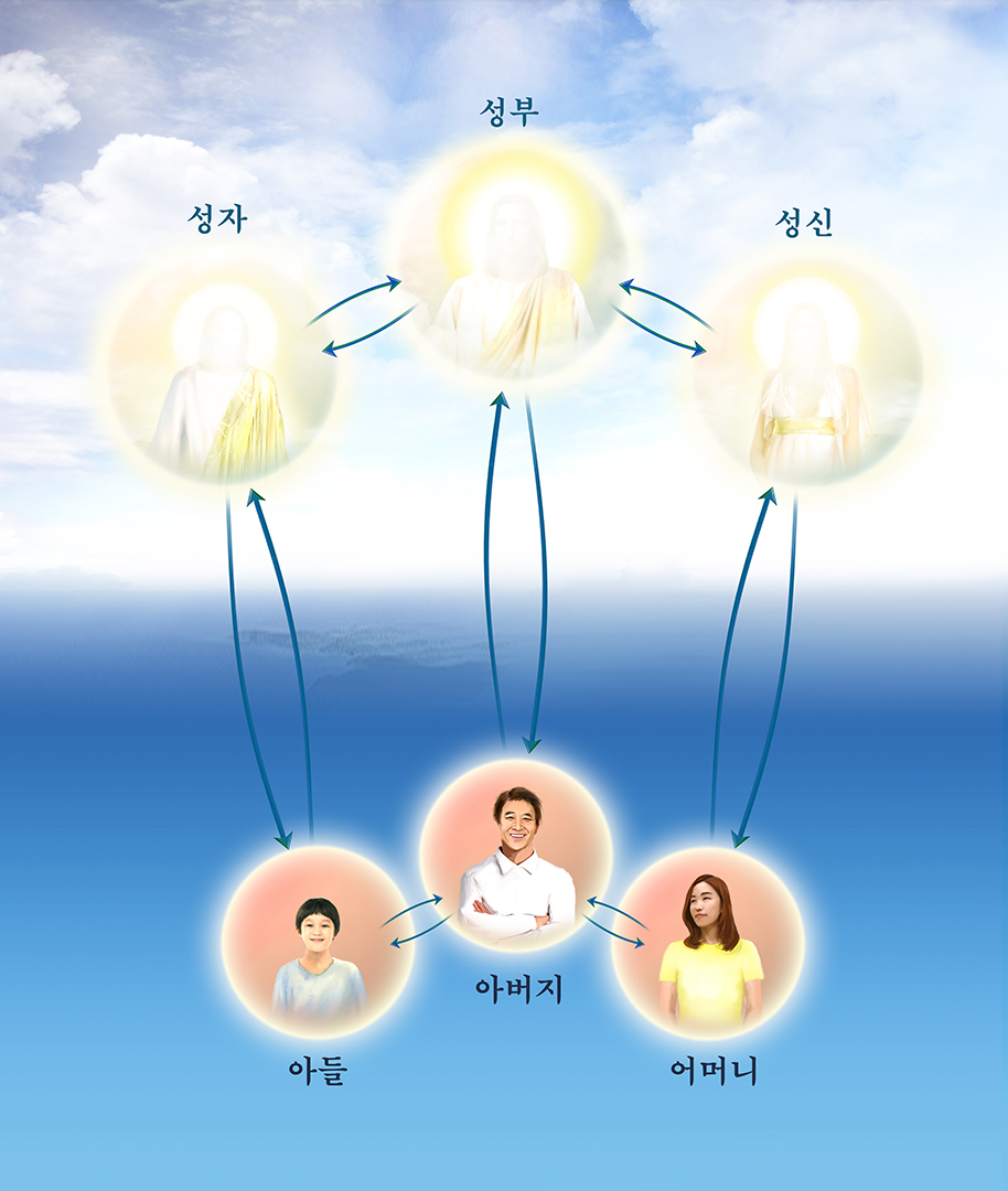 ‘삼위는 각각이지만 하나와 같다’라는 말은 이치적으로 ‘축소한 가정’을 생각하면 된다. 하나님은 아버지격, 성령님은 어머니격, 성자는 아들격으로 존재하신다. 다만, 하늘나라의 체제는 이 세상 가정체제와 달라서 이치적으로 설명할 뿐이지 세상말로 ‘딱 이렇다’라고 말하기는 어렵다.